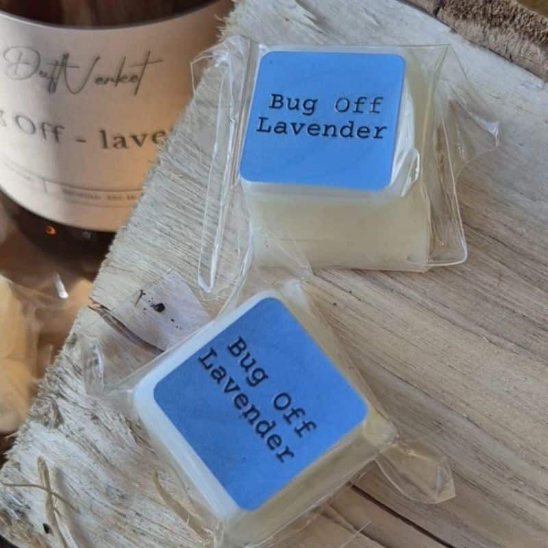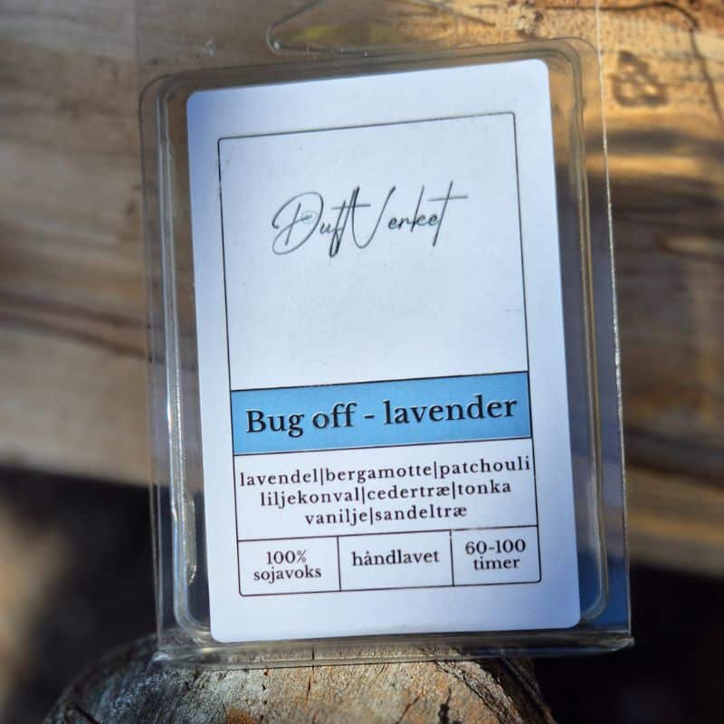 Prøv at kombinere en halv brik Bug Off – Lavender med fx en blomstret eller træagtig duft, og skab din egen unikke stemning